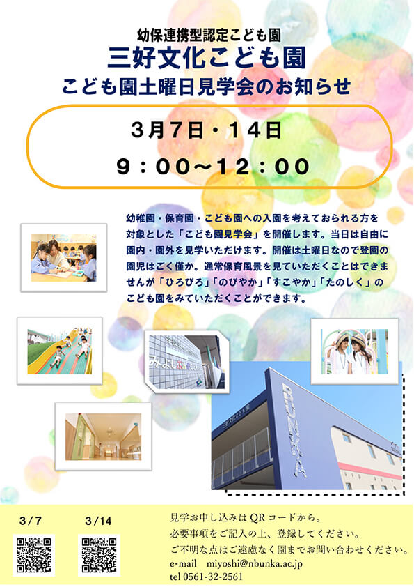 【土曜日開催・施設自由見学】土曜日園内見学会について (更新日:2026.2.27)