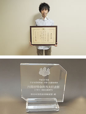 Aさんは、その功績によって「子ども若者育成・子育て支援功労者表彰」で「内閣府特命担当大臣表彰」を受賞し、野田内閣総理大臣 (当時) からご招待を受け、総理大臣直々に表彰状を受け取りました。