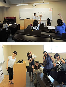 どうやらピアノの得意な学生が先生役となり、音楽理論の授業をしているようです。ホワイトボードに鍵盤を描き本格的です。教えてもらっている学生からも盛んに質問が出てなかなか活気のある授業です。