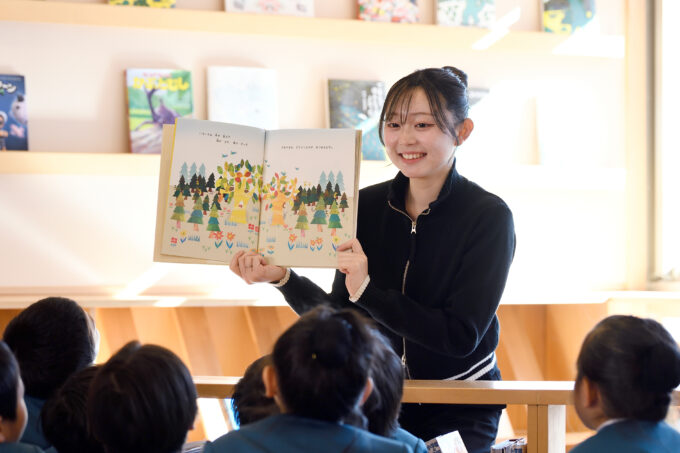 学校のすぐ隣には附属幼稚園があり、日常的にこどもたちの様子を感じられる環境があります。授業で学んだことを、実際のこどもの姿と重ね合わせながら理解できるため、知識が“生きた学び”として定着していくそうです。