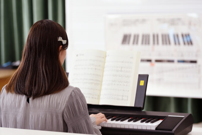 不安もあったそうですが、マンツーマン指導で基礎から学び、今ではさまざまな曲が弾けるようになりました。